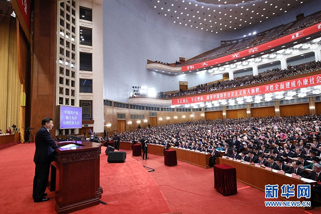 10月18日,中国共产党第十九次全国代表大会在北京人民大会堂开幕。新华社记者 饶爱民 摄